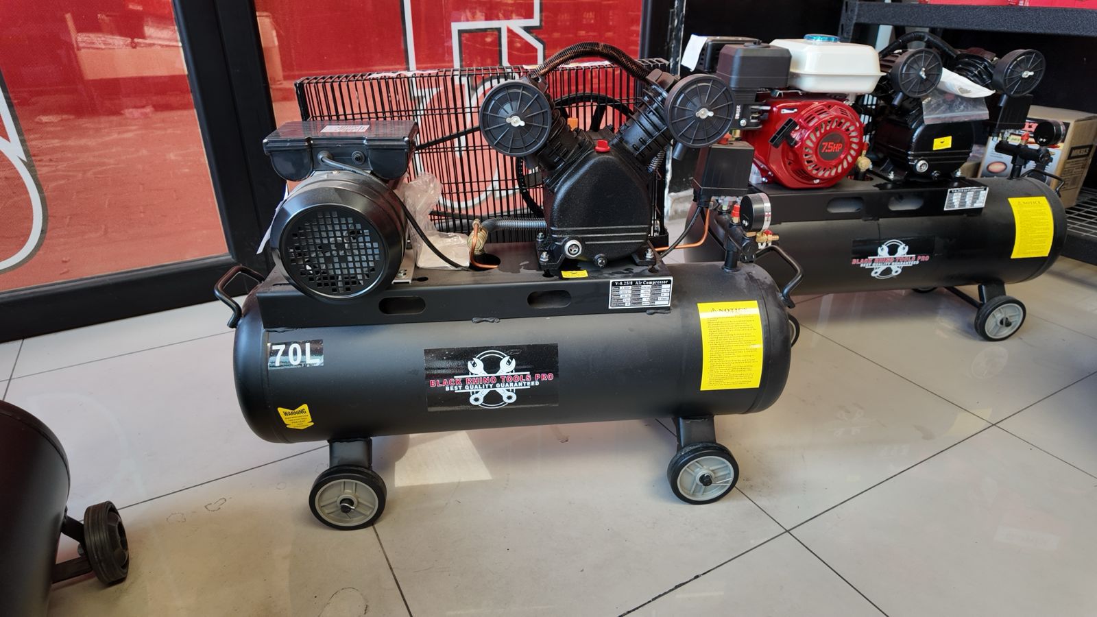 Compresor de Aire 3HP con Banda (70 Litros). Este equipo esta fabricado en acero reforzado con acabado en pintura electrostatica para evitar la corrosion.