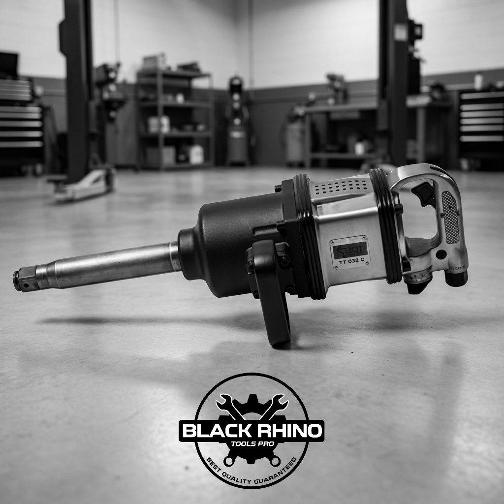 Una pistola de impacto neumática de 1 pulgada diseñada para aflojar o apretar tuercas y tornillos de gran tamaño, especialmente en aplicaciones de mantenimiento de maquinaria pesada, camiones, equipos agrícolas, etc.
