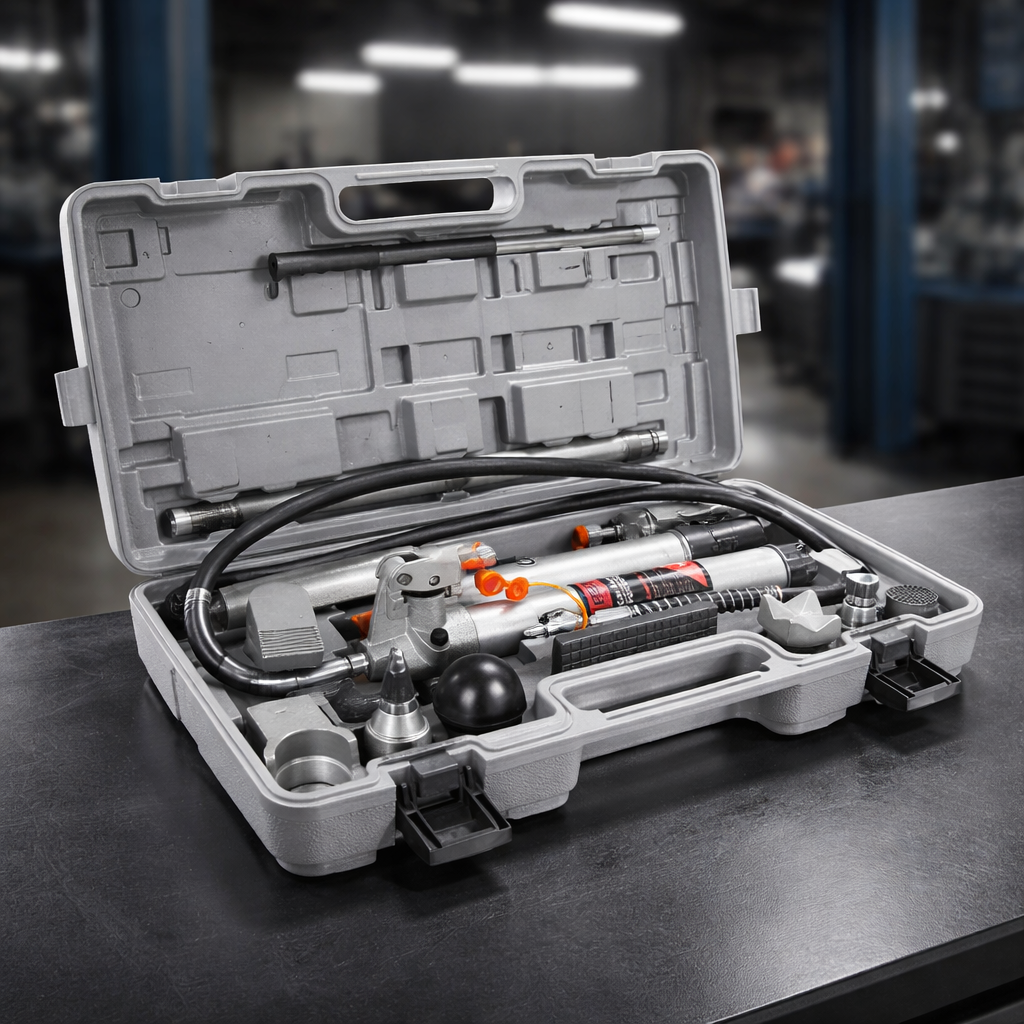 El equipo funciona con una bomba hidráulica de alta calidad y está fabricado para resistir trabajo pesado en Talleres de Mecánica Automotriz y Enderezado y Pintura. Los materiales con que está fabricado son de alta calidad y sus partes están diseñadas de tal forma que resisten el trabajo duro.