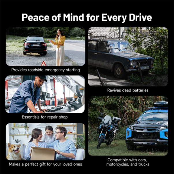 Además, su salida DC 12V/10A permite alimentar accesorios como compresores de aire, infladores de neumáticos y refrigeradores portátiles, convirtiéndolo en una verdadera fuente de energía de emergencia para el automóvil.